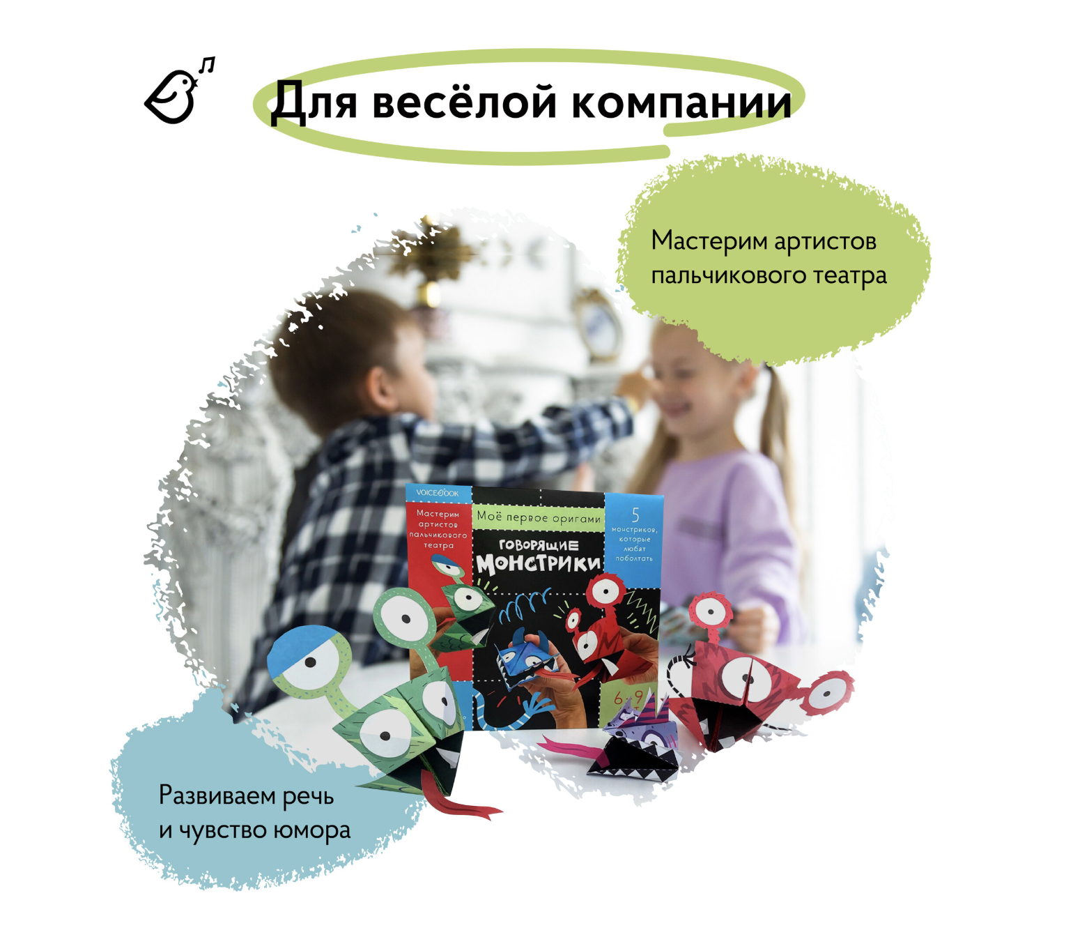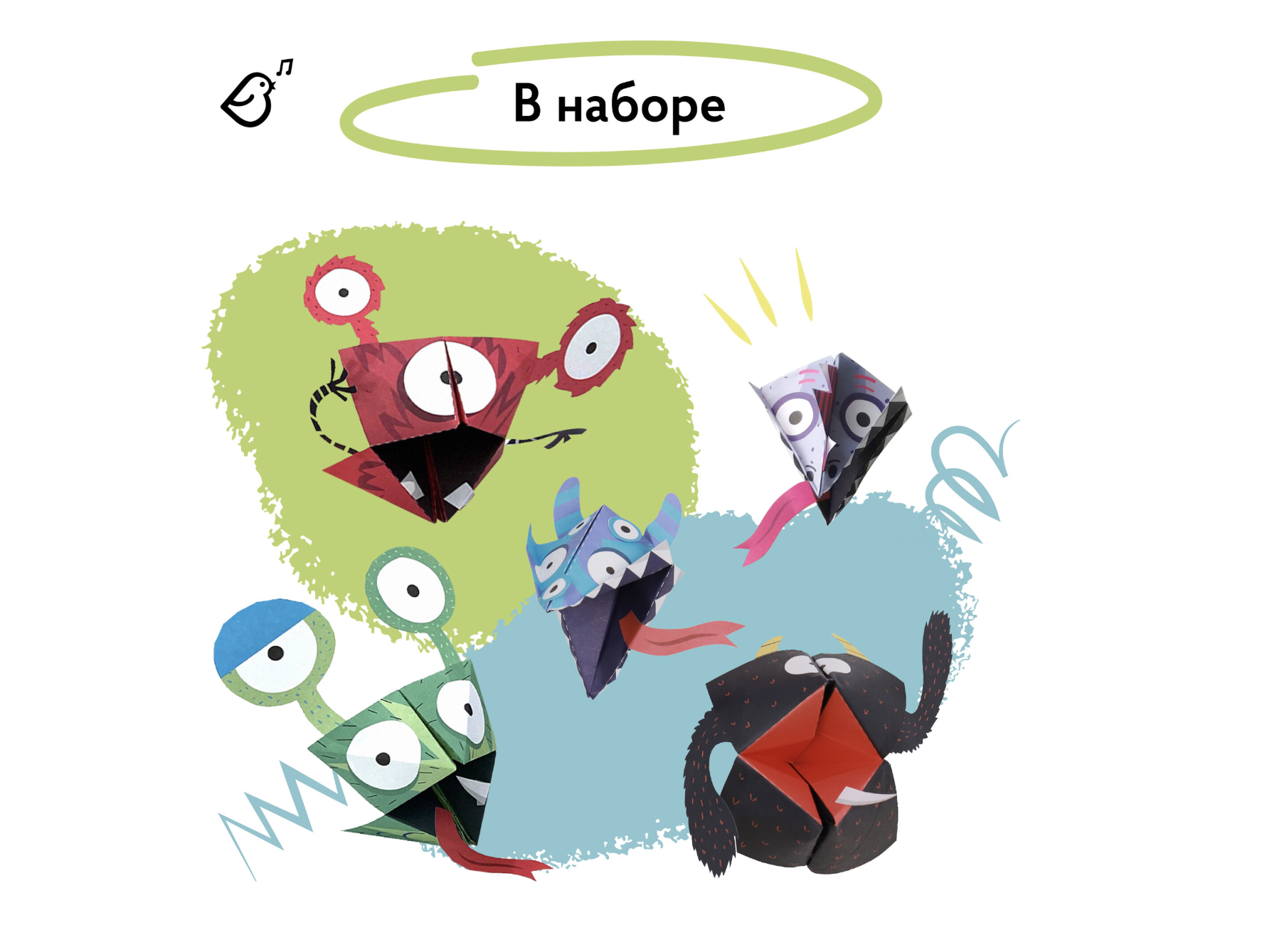 Искусство складывания бумажных фигурок — это завораживающая и творческая игра: складываем листочек бумаги по инструкции, вырезаем и доклеиваем дополнительные элементы, и листочек, как по волшебству, обретает форму. Собери 5 смешных монстриков и устрой представление пальчикового театра!