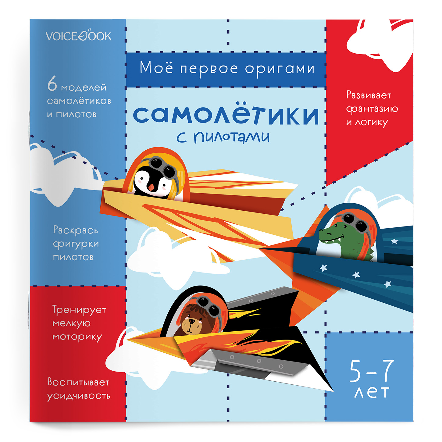 Это альбом с набором из 6 разных моделей самолетов для поделок-оригами. Каждым самолетом управляет пилот, его можно вырезать, раскрасить и посадить их за штурвал. Все, что понадобится для творческого занятия с детьми 5-7 лет, находится внутри конверта: пошаговая схема-инструкция сборки фигурок оригами и QR-код с подробной видеоинструкцией, бумажные листы для поделок оригами, информация о фигурах высшего пилотажа и игра на внимательность.